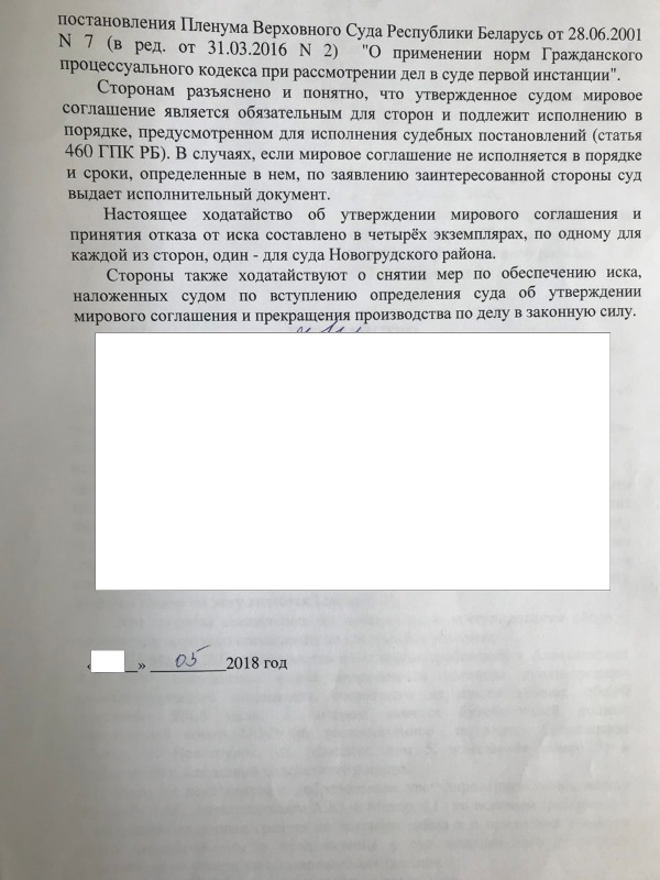 Решением суда с Ответчиков в пользу Истца взыскана сумма займа в размере 51 200 белорусских рублей, проценты за пользование чужими денежными средствами 16 355 белорусских рублей, расходы по оплате юридической помощи в размере 2 800 белорусских рублей, расходы по оплате государственной пошлины в размере 933 рубля 75 копеек.![]()